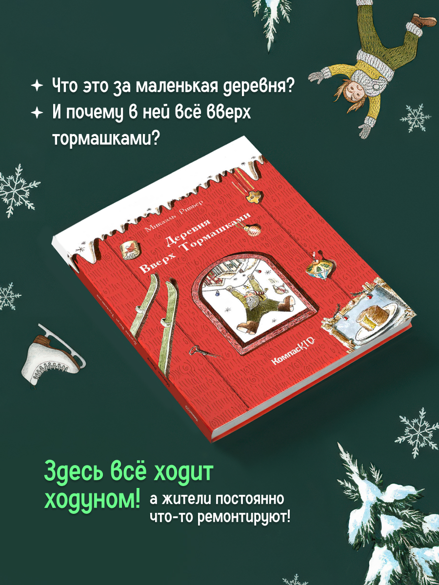 Французский художник Микаэль Ривьер (родился в 1984 году) - выпускник Школы киноиндустрии города Ангулема, и это легко угадывается в его книжке: "Деревня Вверх Тормашками" - словно добрый рождественский мультик, "Падал прошлогодний снег" и "Щелкунчик" в одном флаконе. Но уж чего-чего, а оригинальности Ривьеру не занимать! И тем интереснее выглядит его работа, что на русский язык её блестяще перевели Михаил Яснов и Анастасия Еремеева.