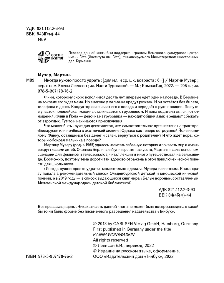 Мартину Музеру (род. в 1965) удалось написать забавную историю и показать мир и жизнь вокруг глазами детей. Окончив Берлинский университет искусств, Мартин писал в основном сценарии для фильмов и телесериалов, читал лекции и много путешествовал на велосипеде. Возможно, поэтому тема дороги так здорово отражена в этой приключенческой повести для школьников.