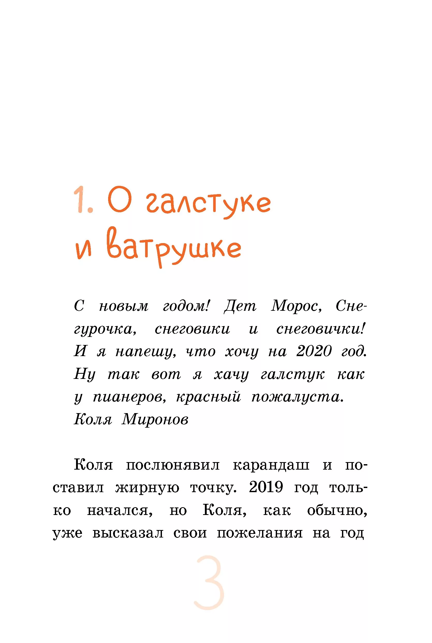 Первоклассник Коля мечтает стать капитаном и отправиться в плавание. А ещё он хочет быть смелым и сильным. Как ребята в старых фильмах, которые он смотрит вместе с мамой. Коле кажется, что герои в них все до одного были такими потому, что носили красные галстуки. Коля даже заранее письмо Деду Морозу написал. Прямо в январе! И заказал галстук. Но до Нового года во‑о-н как долго. А пока он готовится к плаванию на необычном судне… На каком? Это вы узнаете из книги.