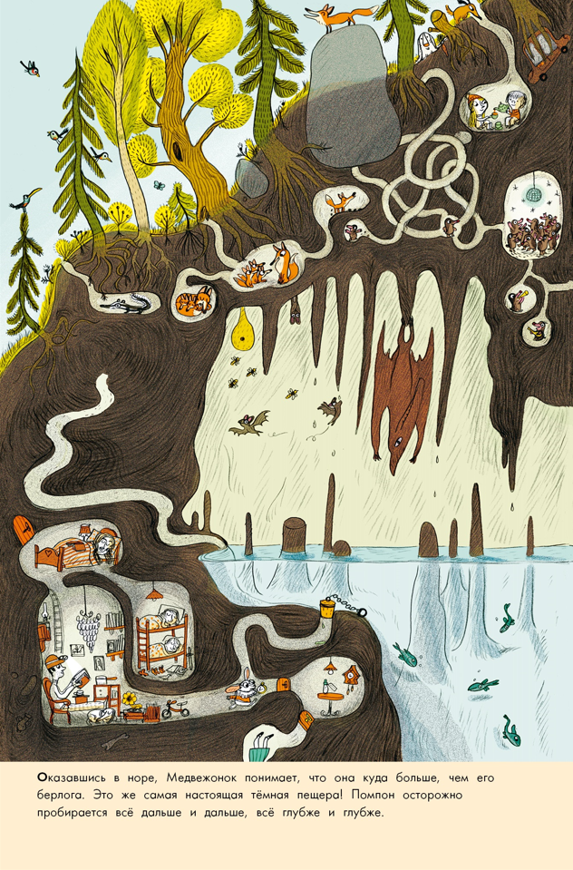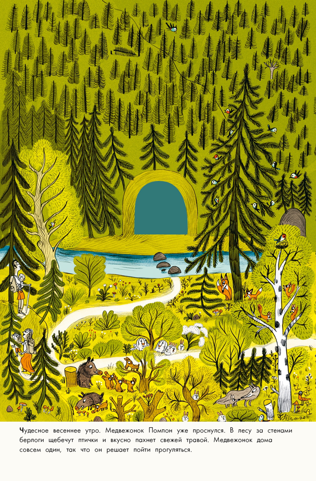 Рисовать столь детализированные картинки — задача не из лёгких даже для человека с самым богатым воображением: никакая фантазия не сгенерирует сотни разных лиц для одной книжки! Поэтому Бенжамен Шо (родился в 1975 году) изображает среди второстепенных персонажей, посетителей оперы и прохожих, собственных друзей и знакомых, знаменитостей и случайных встречных — и много смеётся в процессе работы. «Мне кажется, если ты не смеёшься, пока рисуешь, то и браться за проект не стоит — читателю тоже не будет смешно!» — считает французский художник. А начинал Бенжамен Шо как иллюстратор чужих книг — и вполне в этом деле преуспел: всего в его портфолио более 60 книг, номинации на премию памяти Астрид Линдгрен в 2017 и 2018 году, золотая медаль Нью-Йоркского Общества иллюстраторов в 2014 году, переводы на разные языки от английского до японского. Книги о медвежонке Помпоне станут для ребёнка первым шагом к самостоятельному чтению, а спустя годы будут оставаться предметом ностальгии. Особое удовольствие наблюдать, как, взрослея и открывая полюбившуюся в детстве книгу вновь, ты замечаешь те штришки, которые прежде ускользали от твоего внимания.