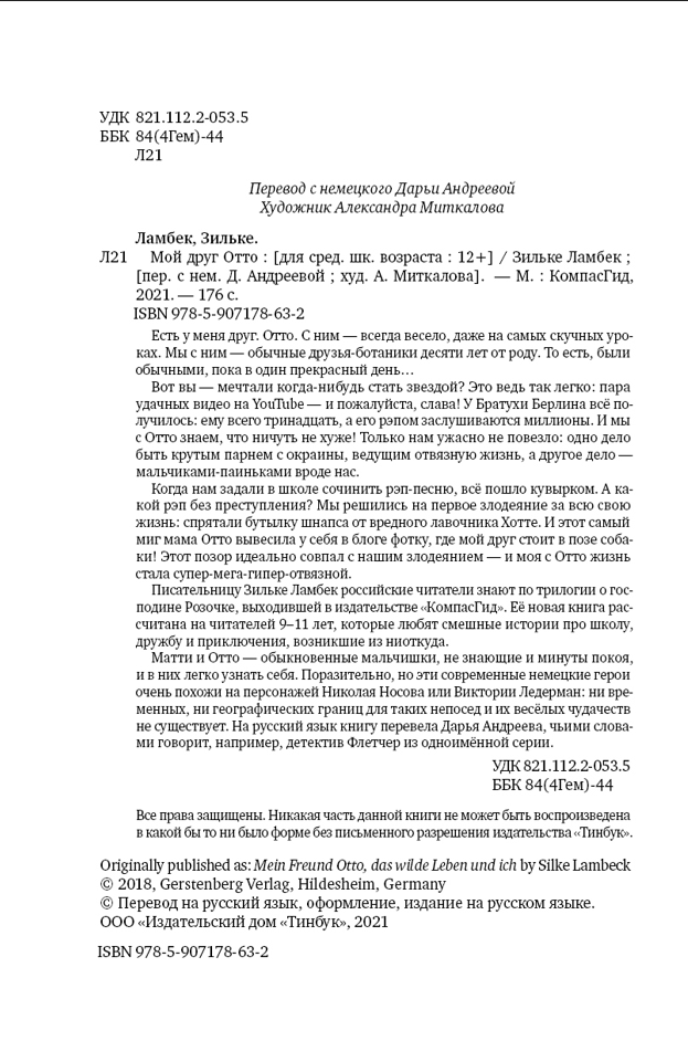 Заметила, что мне стало нравится, как пишут о детстве немецкие авторы. Поэтому не смогла пройти мимо книги Зильке Ламбек. В аннотации сообщили, что её персонажи похожи на героев книг Носова, а после прочтения “Моего друга Отто” я ещё добавлю сюда и Успенского. Их книги в детстве я любила по нескольким причинам: у них герои всегда попадали во вполне себе обычные ситуации с лёгкой долей невероятности, речь детей и подростков всегда была в меру современна, то есть писатели не пытались молодиться (а ребёнок-читатель сразу чувствует такую наигранность), а главное — темы: школа, дружба, родители и всё то, что актуально возрасту.