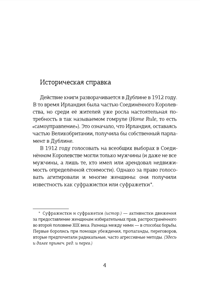 Ничего нельзя! Учи уроки, чини одежду, наблюдай из окна неспокойный Дублин 1912 года. Чем себя занять четырнадцатилетней Молли Карберри, кроме писем подруге? Молли жалуется ей на противного братца Гарри, на сестёр — невозможно идеальную Джулию и вообще-то славную, хоть и своевольную Филлис, у которой вдруг появились секреты. Эта тайна перевернёт скучную жизнь главной героини: Филлис присоединилась к суфражеткам! Час от часу не легче… Ведь те, кто так себя называет, требуют невозможного — права голоса для женщин.