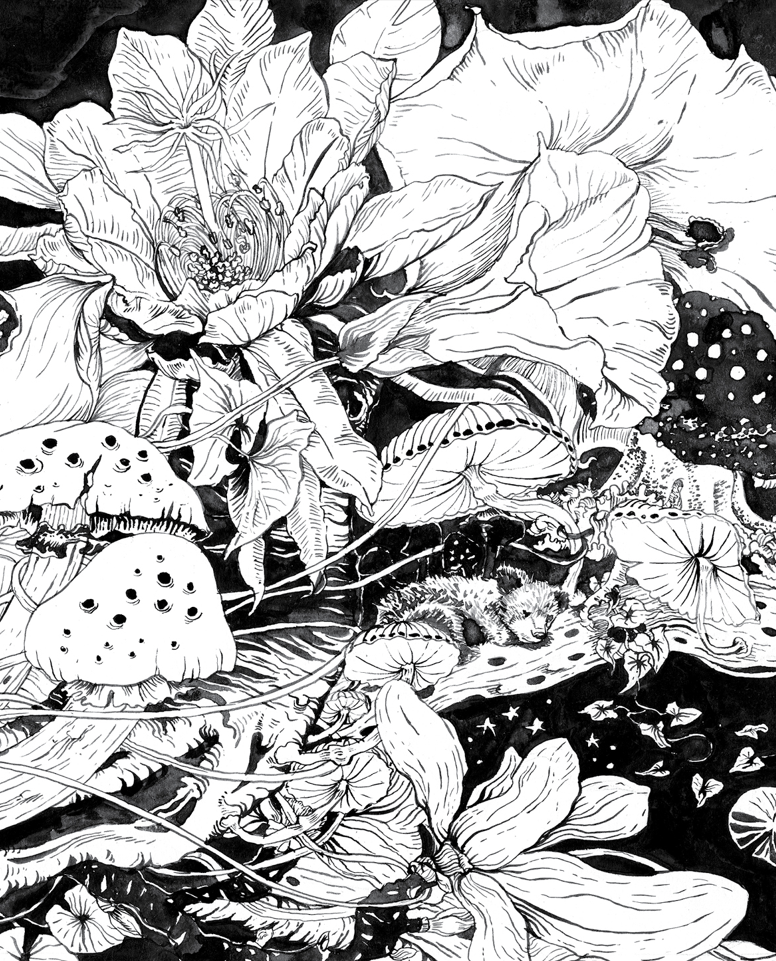 Эта книга — как альбом лучших работ художника-сюрреалиста. На страницах растут неведомые цветы, разыгрываются странные сюжеты… Например, пса опутывают цветами гуси. Так что если вы ищете идеи для татуировок, книга может помочь.