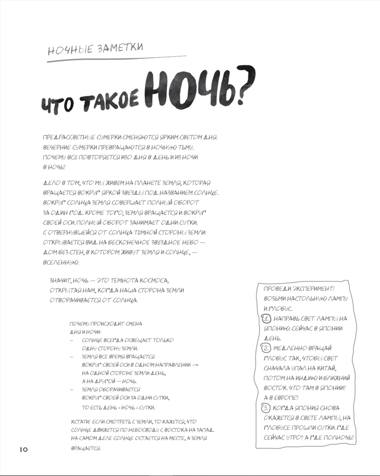 Одна из самых стильных энциклопедий, которая доступно расскажет, что же такое ночь и как так получается, что она сменяет день.