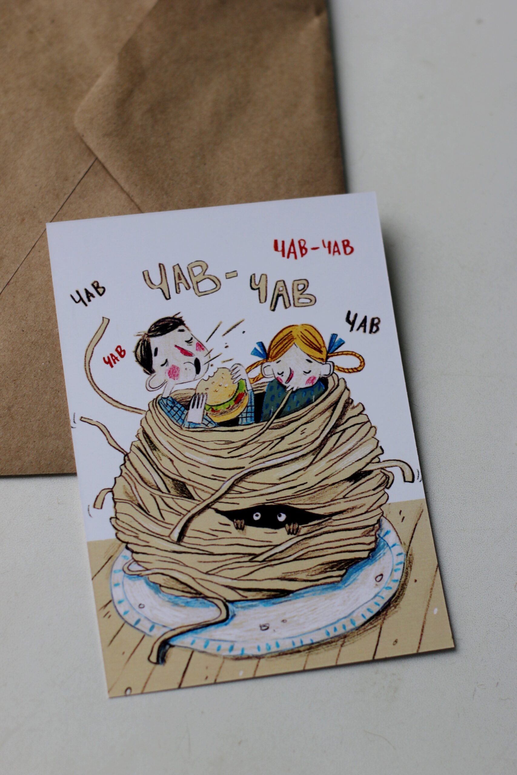 Почтовая открытка с иллюстрацией художницы Тиховой Екатерины к книге "Чокнутый этикет".