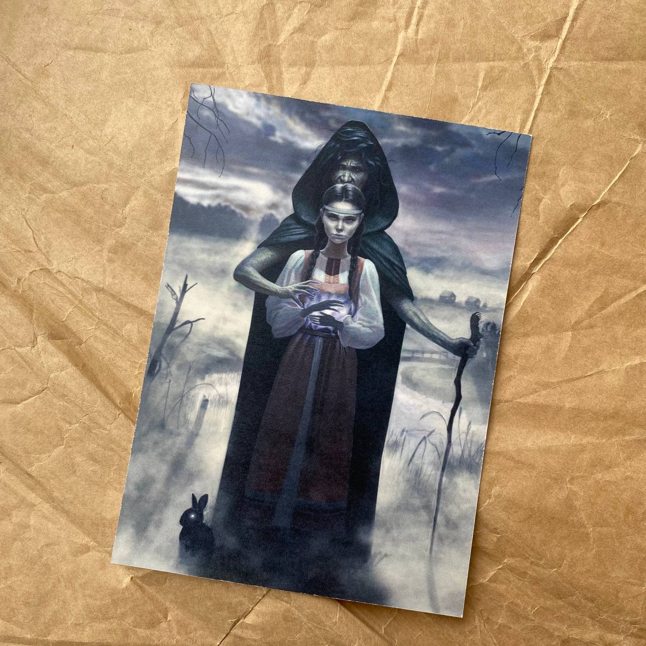Почтовая открытка с иллюстрацией художника Данияра Альджапара к книге "Вершители. Посох Велеса".