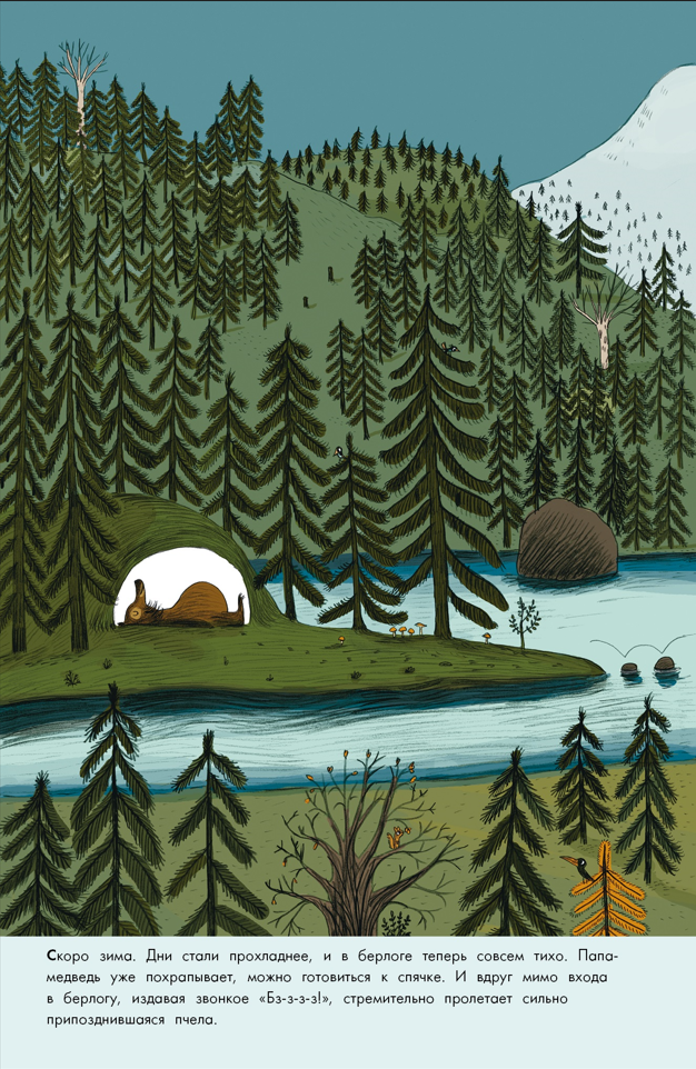 Где пчела — там и мёд! Это медвежонок Помпон прекрасно усвоил, поэтому, когда мимо берлоги летит с весёлым жужжанием пчёлка, он не раздумывая бросается за ней. А как же папа? Обнаружив пропажу любимого сына, он готов в своих поисках дойти до края света, покинуть родной лес, обежать весь город — да что там! — даже спеть на сцене оперного театра!