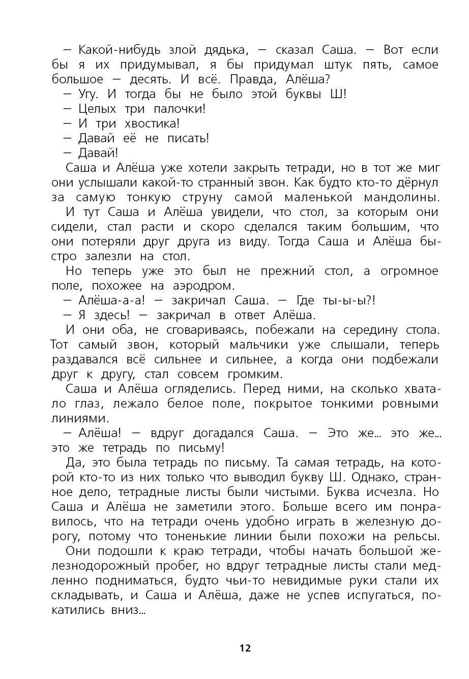 Детский детектив о мальчиках-близнецах Саше и Алеше, которые ленились выписывать буква "Ш". От этого буква обиделась и пропала. А что было дальше и какие испытания выпали на долю мальчикам по имени Саа и Алеа - узнать вы можете, прочитав эту книгу. Эта история намного замысловатее и интереснее, чем "Аля, Кляксич и Буква А", затягивает и завлекает. Детям (6 и 9 лет) очень понравилось.