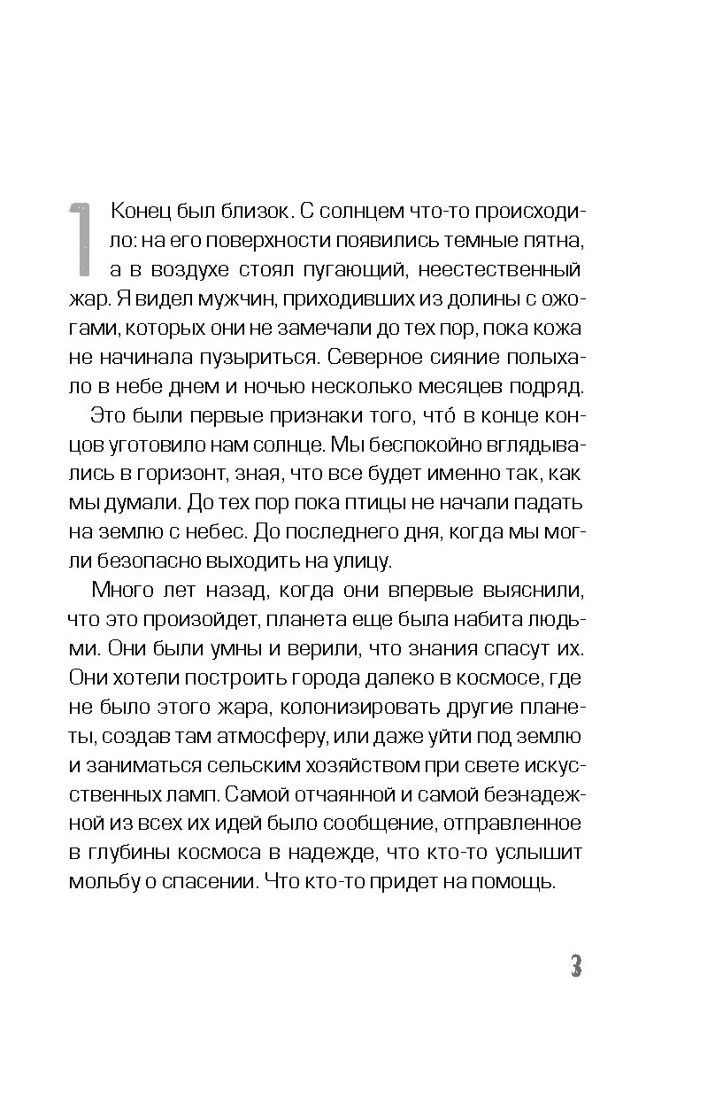 Автор предлагает читателю заглянуть в спроектированную им версию будущего — в 2203 год, где перед нами предстает не самая радужная картина: Земля выжжена солнечными вспышками, города разрушены, отравленная атмосфера едва пригодна для человека, и вся жизнь — борьба за выживание.