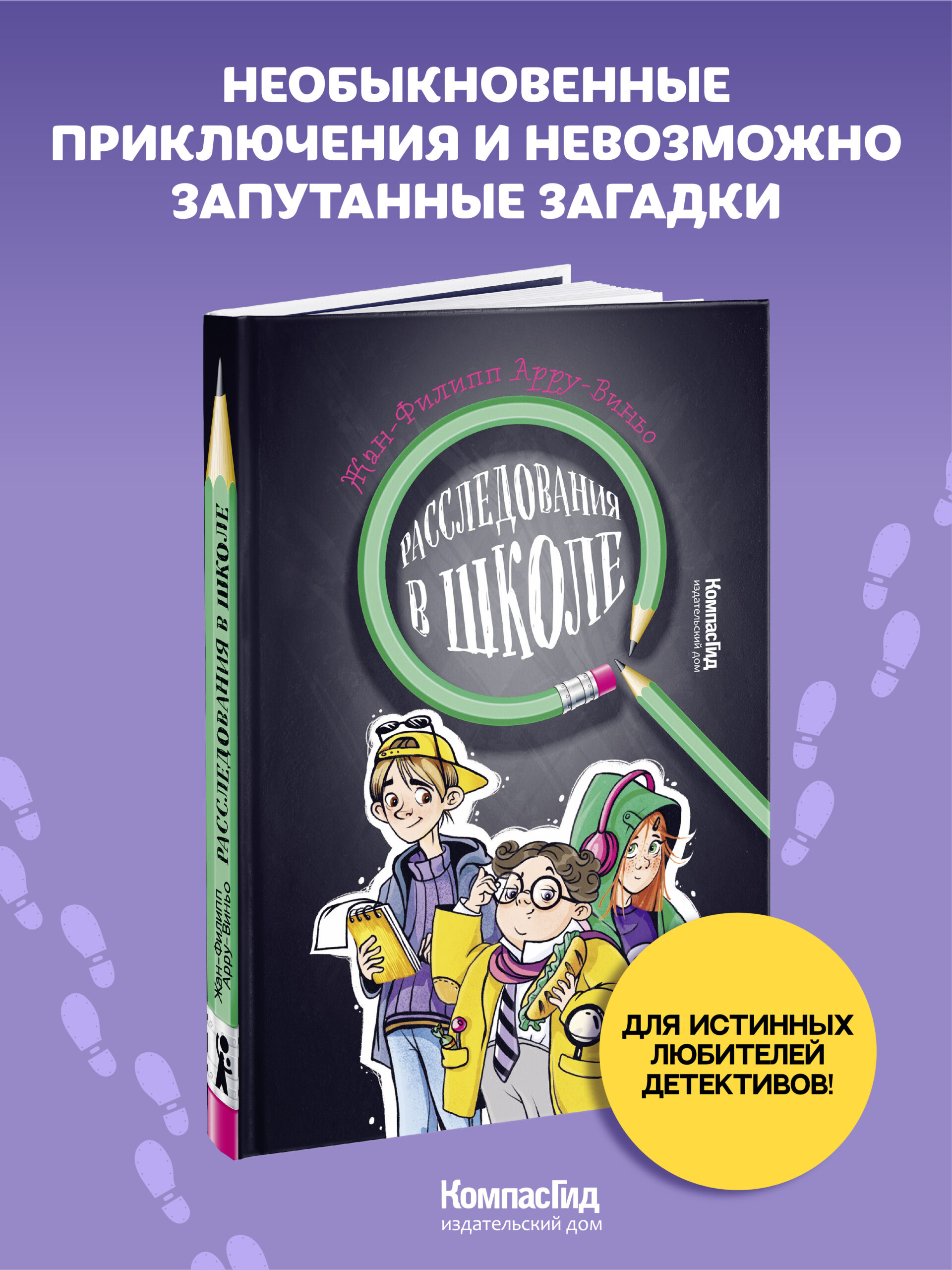 «Расследования в школе» — новая книга Жан-Филиппа Арру-Виньо, известного по серии «Приключения семейки из Шербура» и детскому фэнтези «Магнус Миллион и спальня кошмаров», выходивших в «КомпасГиде». Новыми героями стали трое французских школьников, которые расследуют загадочные происшествия.