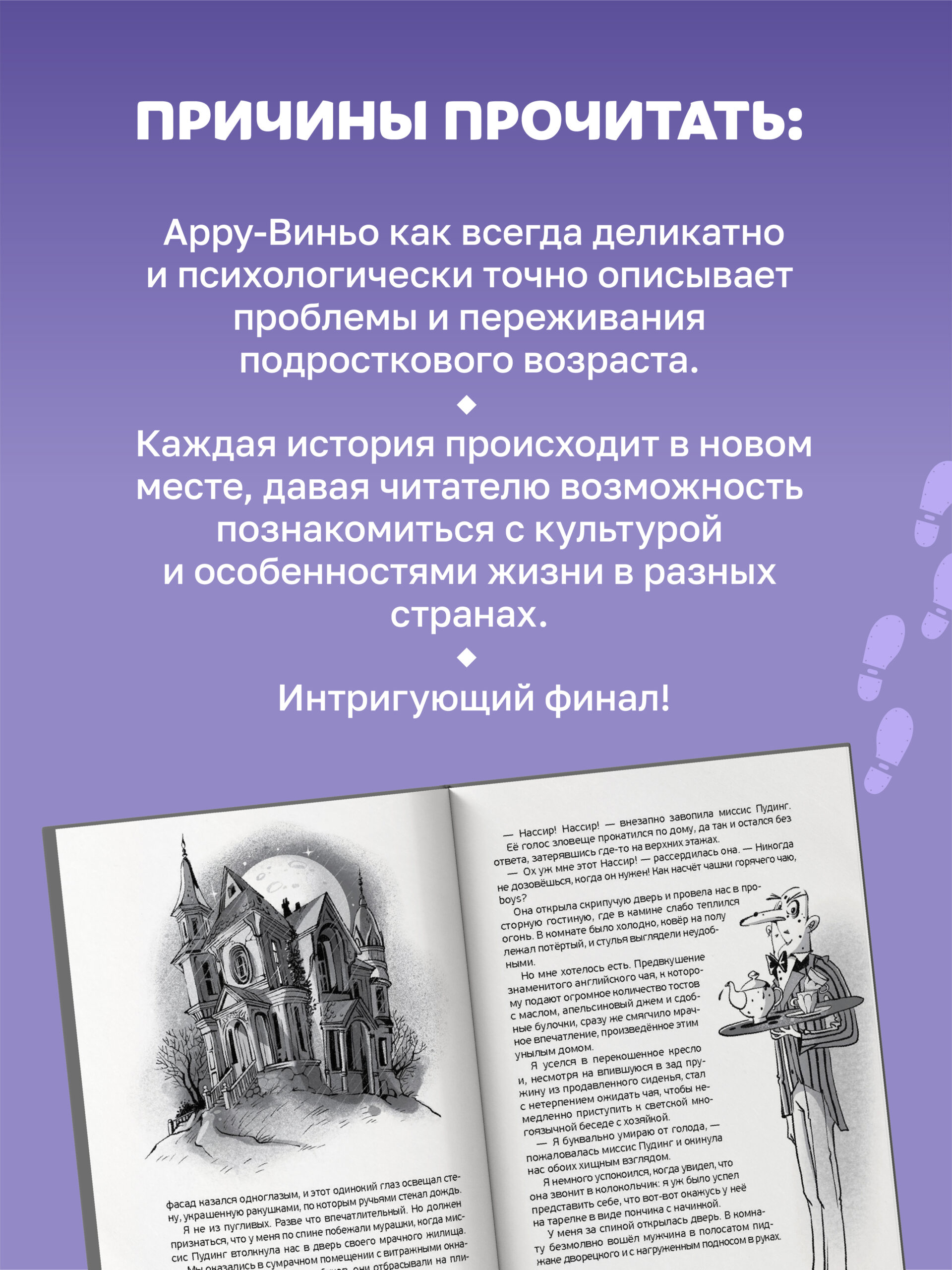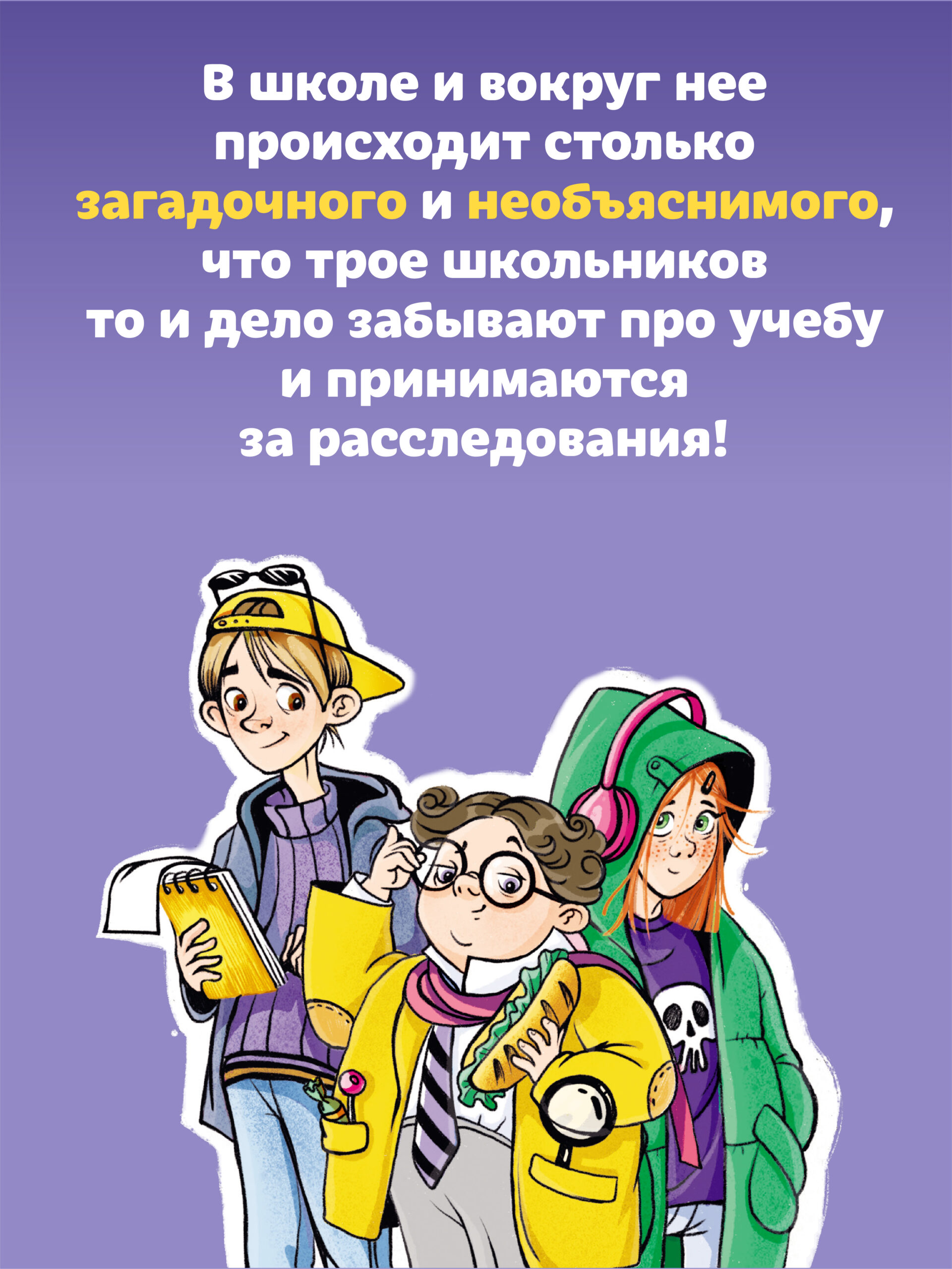 Игра в детективов — это очень весело. Французский писатель Жан-Филипп Арру-Виньо, создатель знаменитых «Приключений семейки из Шербура», обратился к детективному жанру. Герои новой книги — трое семиклассников, которые расследуют странные происшествия. Например, выясняют, куда подевался учитель, который вез школьников на экскурсию в Венецию. Или — что случилось со школьным лаборантом месье Штативом, найденным без сознания. Или вообще — что за странные научные эксперименты проводят пожилая английская леди и ее слуга. Три друга — два мальчика и девочка — схема, работающая безотказно: не только серия о Гарри Поттере тому доказательство, но и множество других книг. У каждого из героев своя «суперспособность» — смелость и находчивость, ум и начитанность или вера в себя и свой исключительный потенциал. Веселые и добрые истории для младшего школьного возраста.