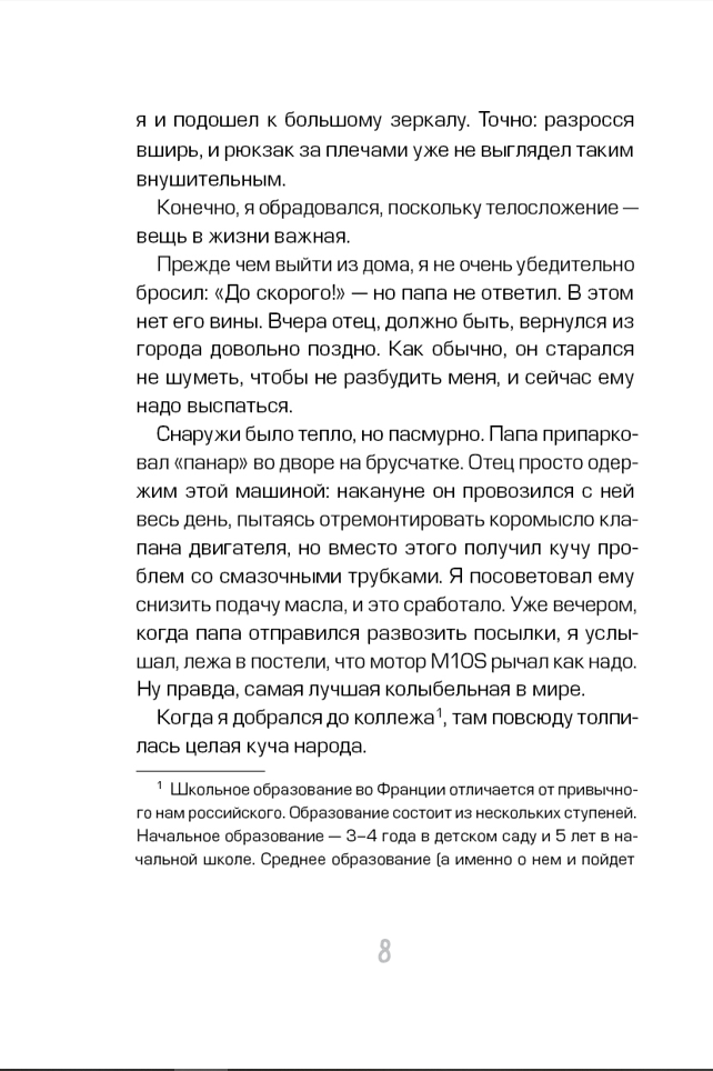 Хотя «неидеальный» Виктор знает наизусть справочник по истории автомобилестроения и, как выясняется, кроме того умеет быть хорошим другом. Автор заставляет героев задуматься о том, что значит быть «нормальным» – где эта граница нормальности проходи? Мир подростка не ограничивается школой – эту простую мысль приходится раз за разом постигать заново: школа – это микромодель общества, но в жизни есть ещё увлечения, любовь, музыка, семья и множество других вещей, из которых на самом деле состоит человек.