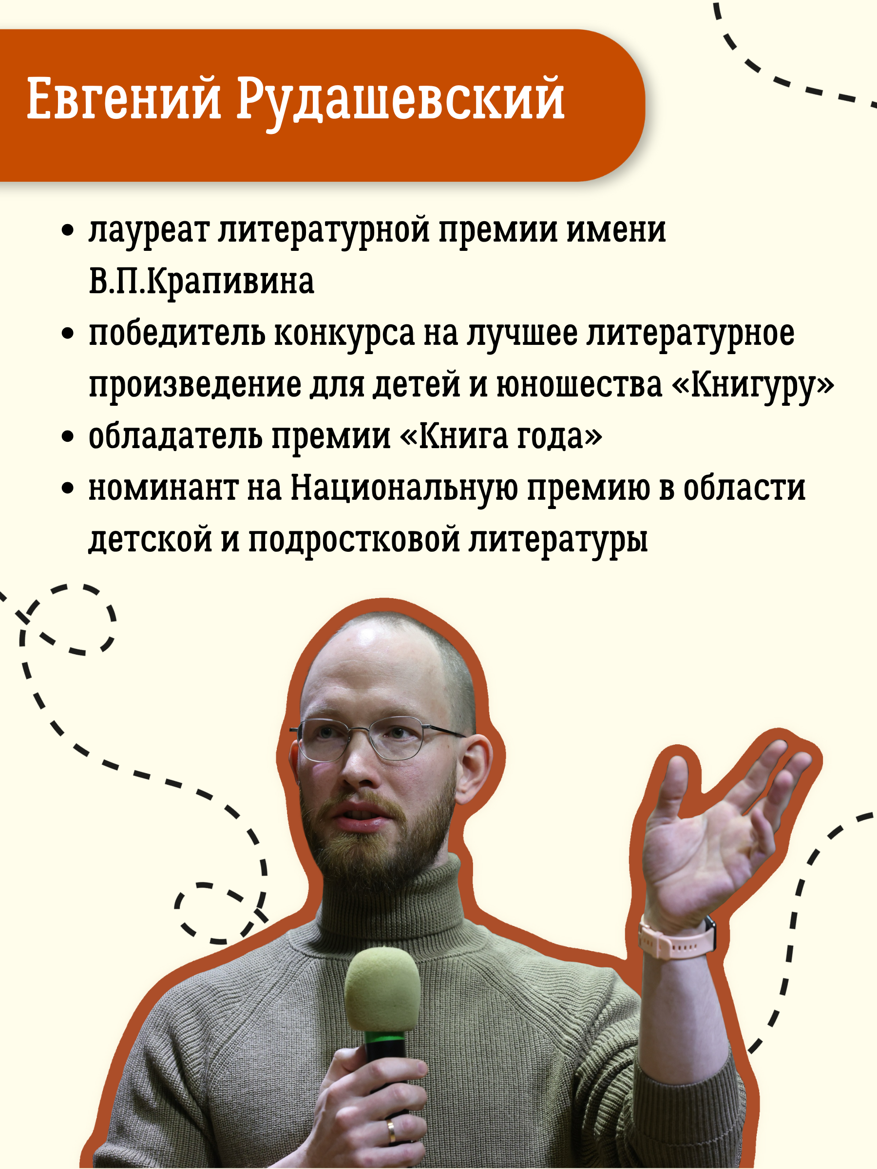 Евгений Рудашевский известен глубоко реалистичными и психологически выверенными произведениями для подростков. Он не раз становился лауреатом литературных премий, среди которых премия имени В.П. Крапивина и конкурс на лучшее литературное произведение для детей и юношества «Книгуру».