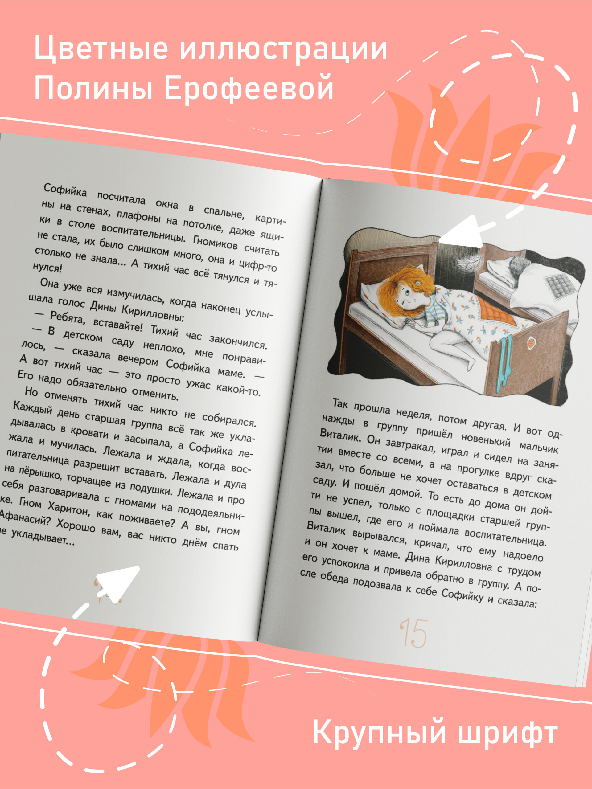 Книга состоит из отдельных, сюжетно не связанных между собой историй, которые замечательно подойдут и для чтения вслух перед сном, и для первого самостоятельного чтения тех дошкольников, которые, как и Софийка, давным-давно выучили все буквы, но читать пока не хотят. С Софийкой наверняка захотят. Потому что каждый ребенок в ней узнает себя — может, в той истории, когда она всю ночь будила папу, чтобы он не прозевал звонок будильника, а может, в той, когда она помогала канарейке вернуться на родину, или, может быть, даже в той истории, когда она старательно искала в свежих пончиках сюрприз...
