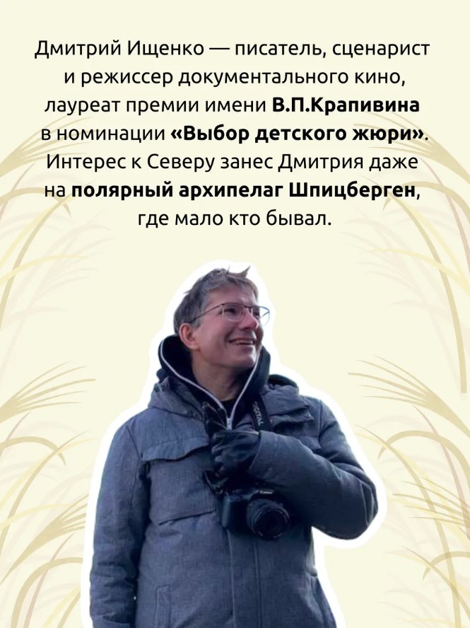 Имя Дмитрия Ищенко уже хорошо известно читателю: вы держите в руках четвертое издание его книги. Писатель живёт в Мурманске, в разное время работал журналистом, сценаристом и режиссёром документальных фильмов. Его повесть «Териберка» входила в шорт-лист премии им. И. П. Белкина, а «В поисках мальчишеского бога» получила премию им. В.П. Крапивина в номинации «Выбор детского жюри».