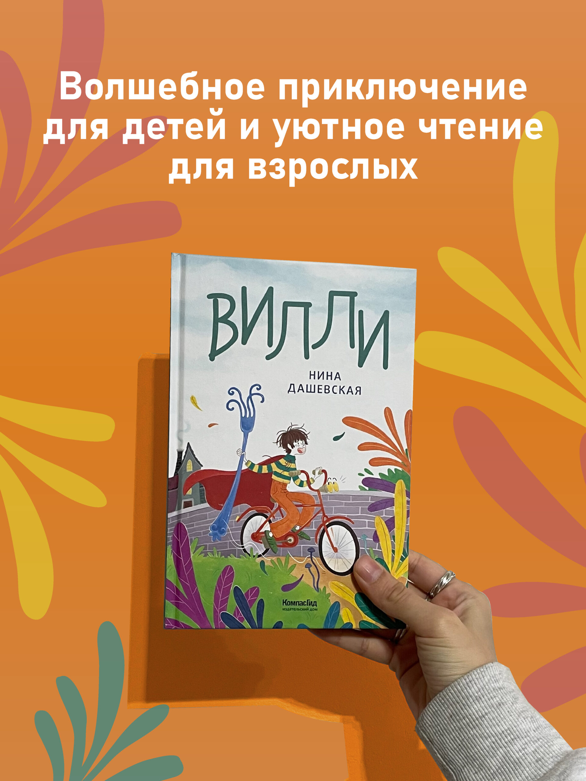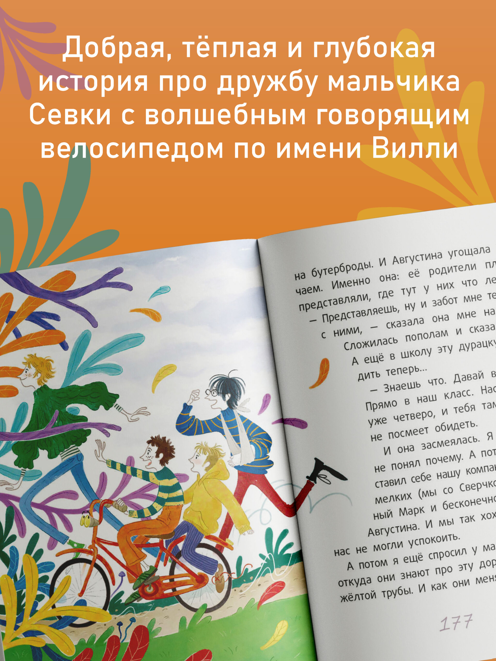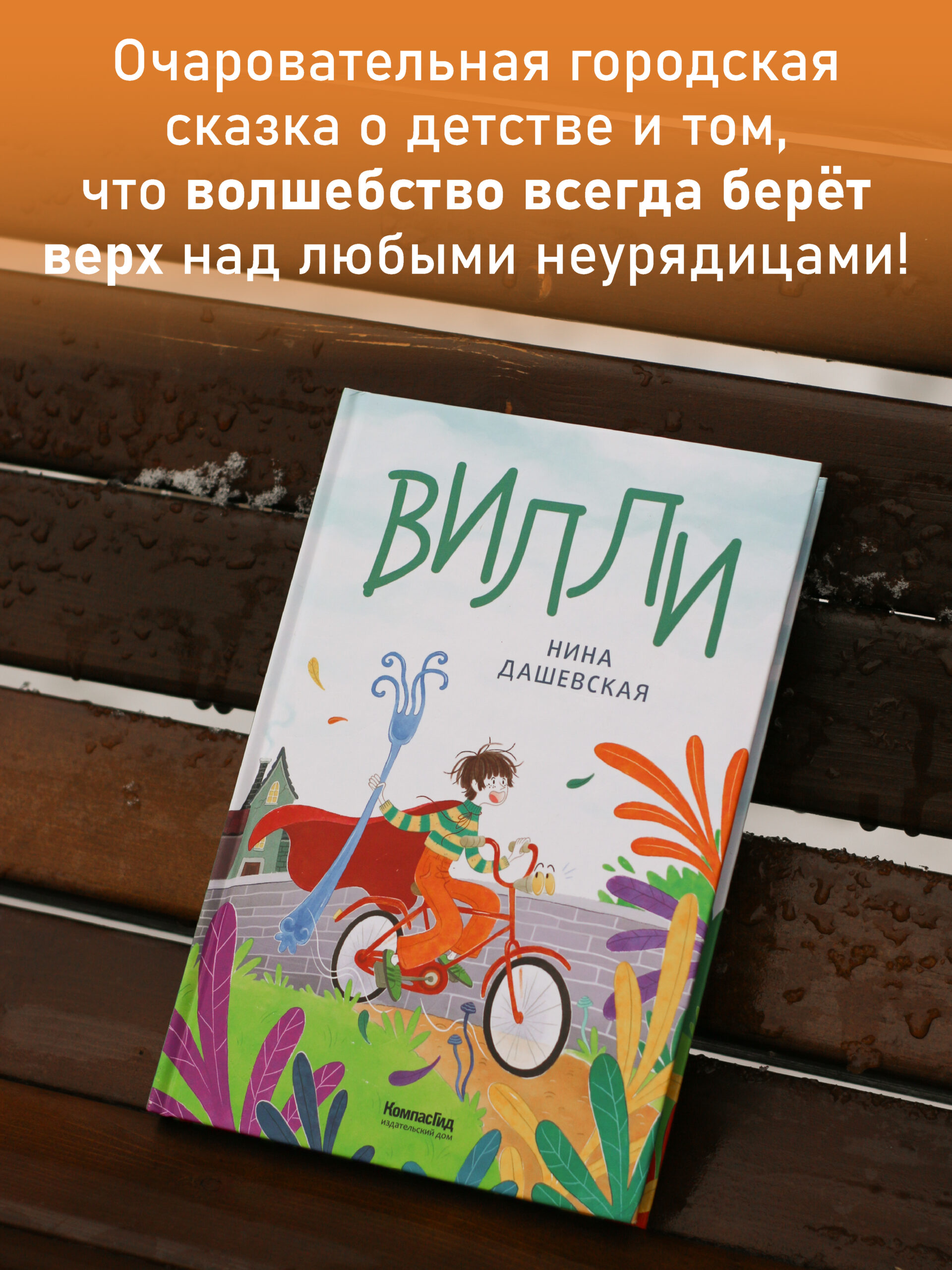 Детство — время, когда в жизни появляется что-нибудь волшебное. У кого-то — говорящий велосипед, у кого-то — заброшенная великанская деревня, у кого-то — подружка, очень-очень высокая девочка, которая печёт самое вкусное печенье. Вот и у Севки, героя повести Нины Дашевской «Вилли», всё это есть. Он, как и все дети, мечтает о настоящей дружбе, верит в чудеса, и они с ним обязательно случаются. То есть, конечно, случаются с ним не только чудеса, но Севка никогда не унывает. Он уверен: в итоге волшебство всегда берёт верх над любыми неурядицами! Особенно если рядом велосипед по имени Вилли.