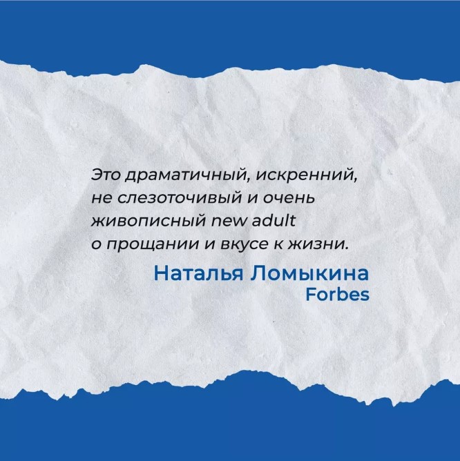 Это драматичный, искренний, не слезоточивый и очень живописный new adult о прощании и вкусе к жизни.